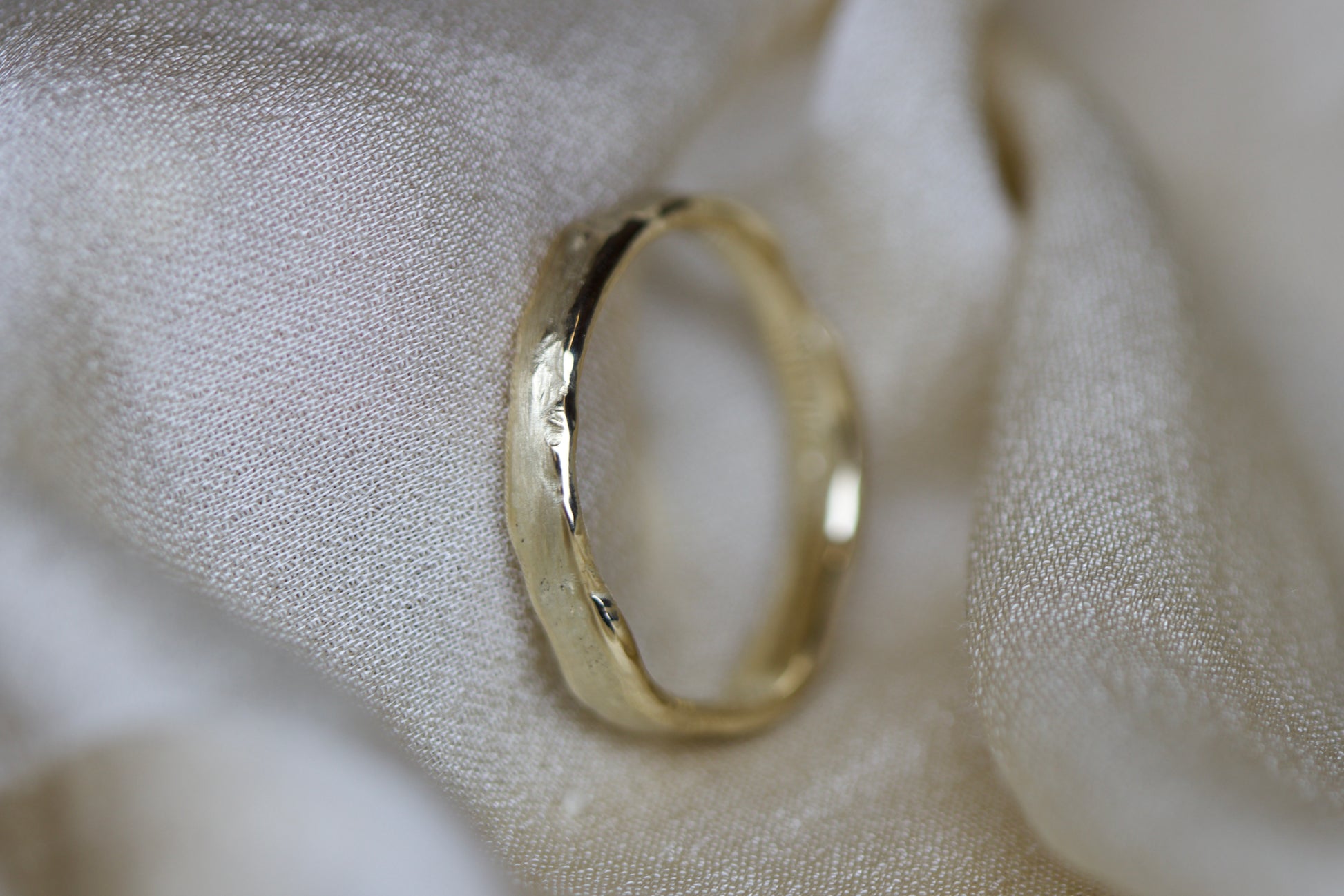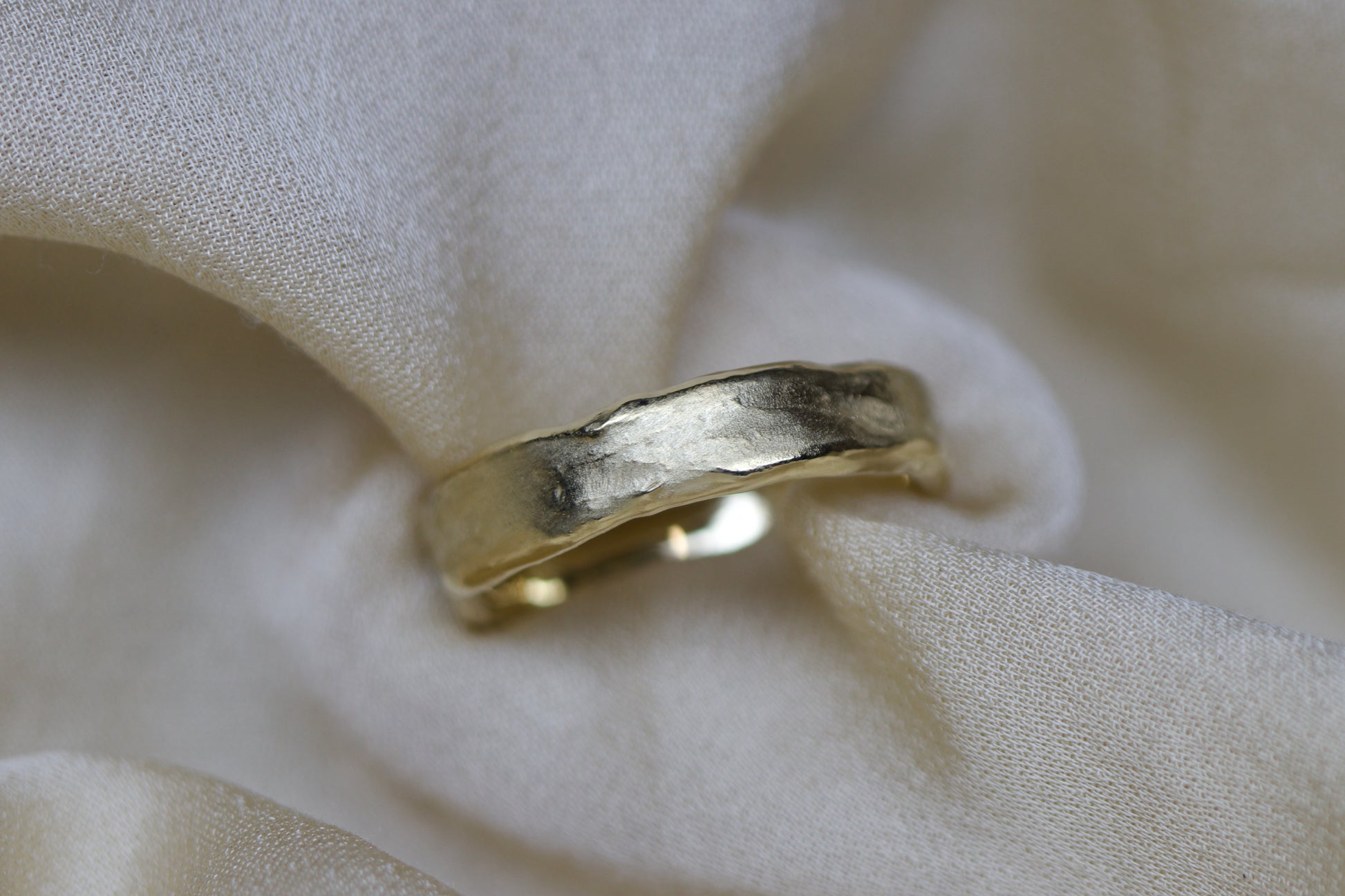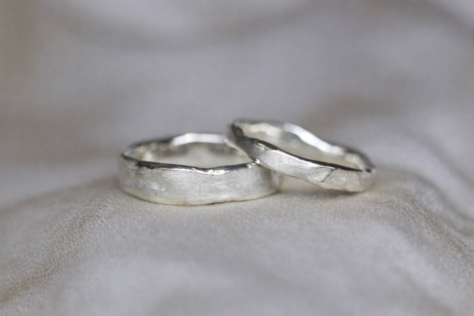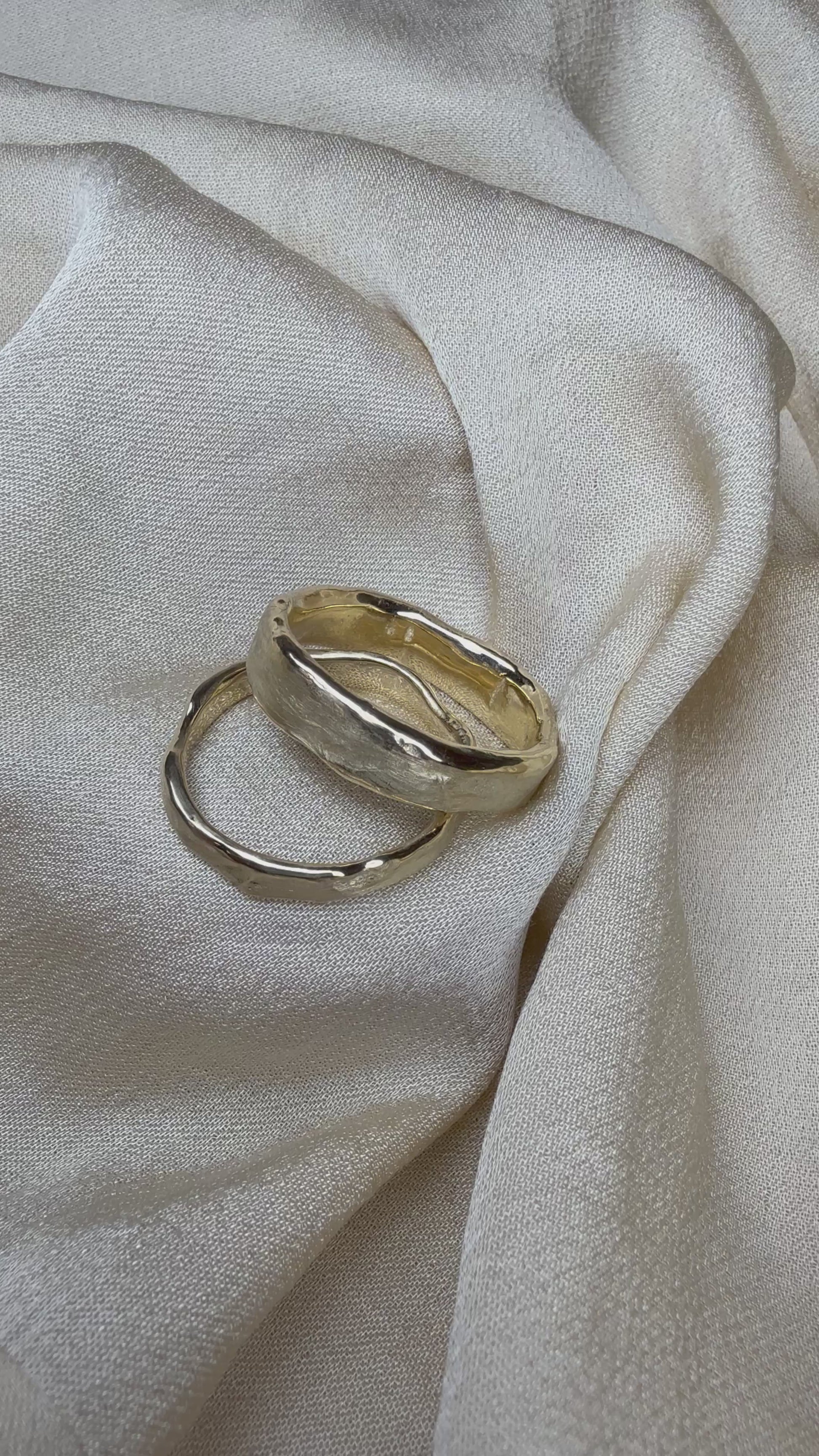 An organic and rustic take on a contemporary wedding set, these bands have been wax carved and then reticulated.